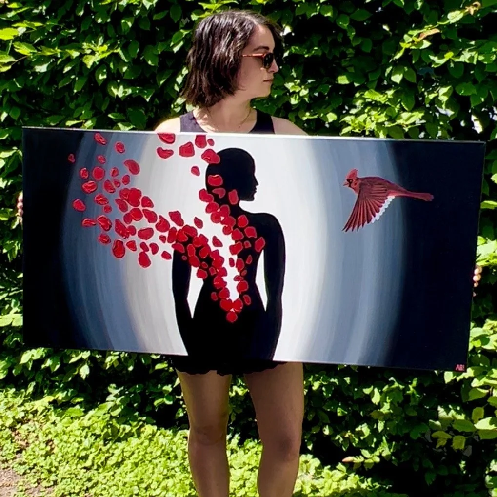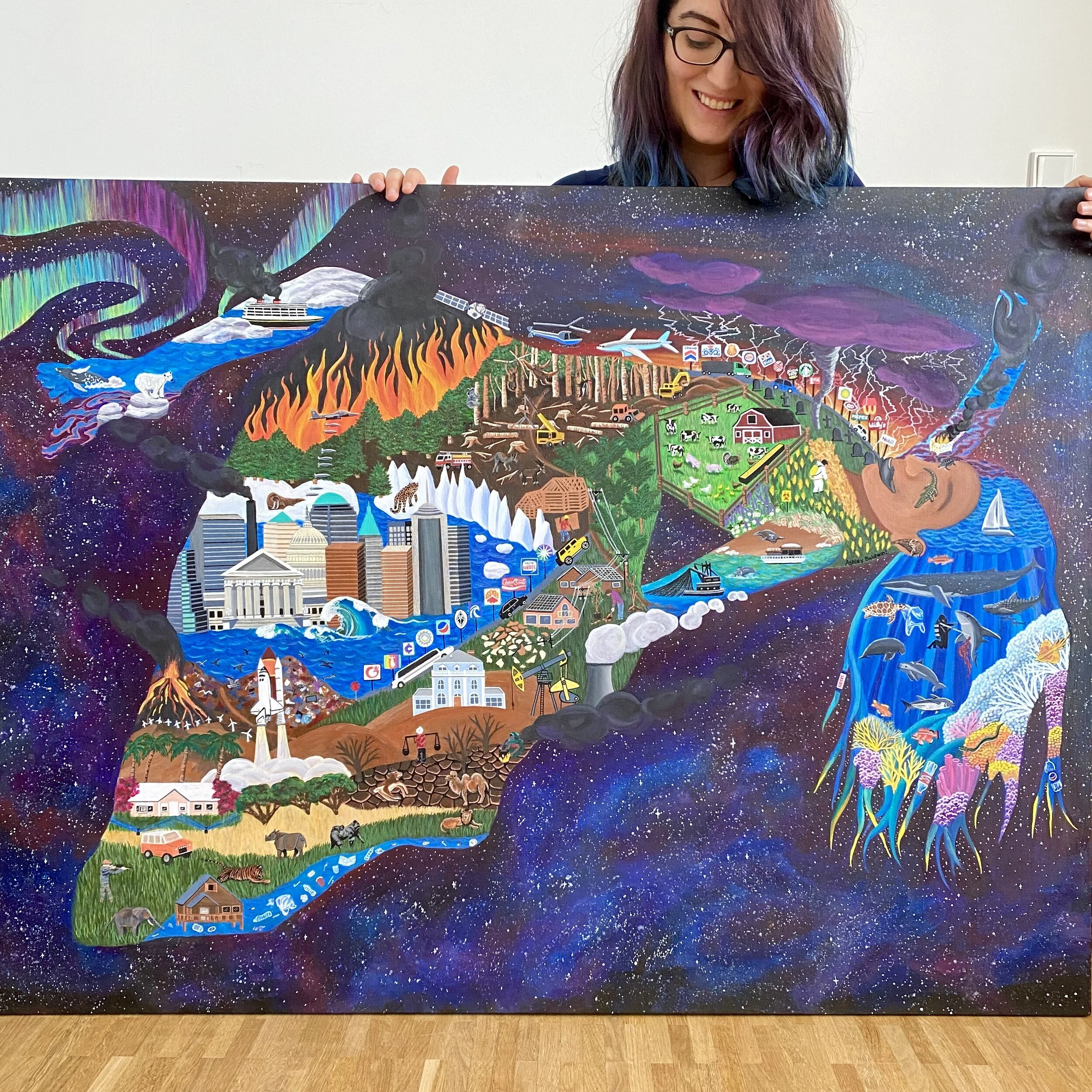 This is a curated selection of paintings exploring climate change, ecological loss, and cosmic perspective. Through symbolic imagery and immersive color, Ashley’s work examines humanity’s relationship to the natural world, loss, and presence.
